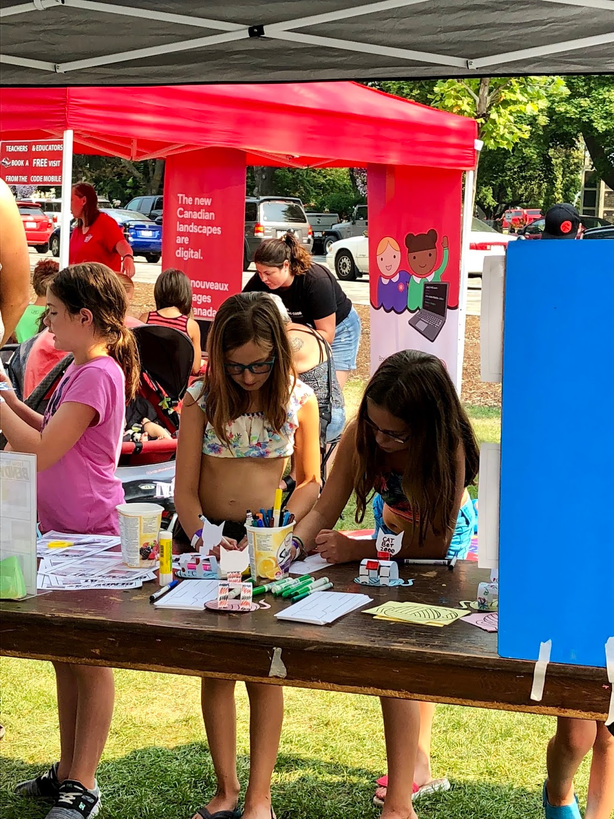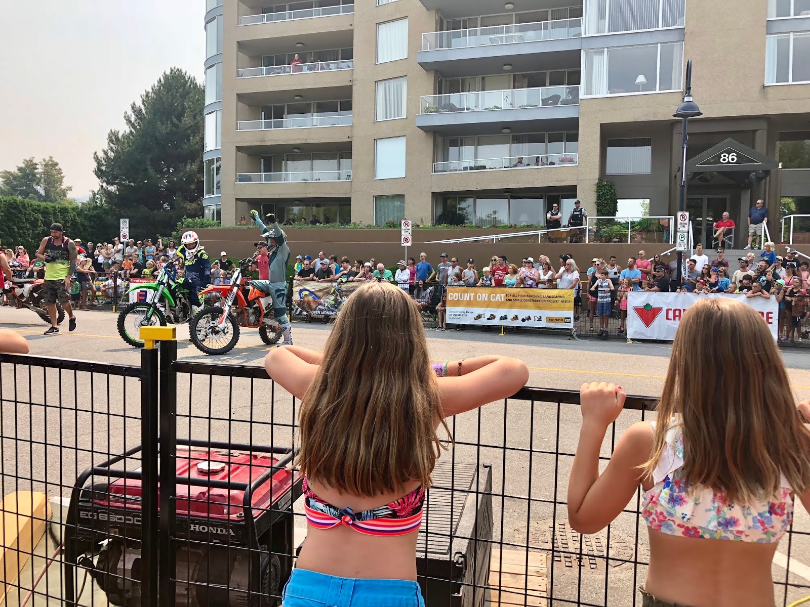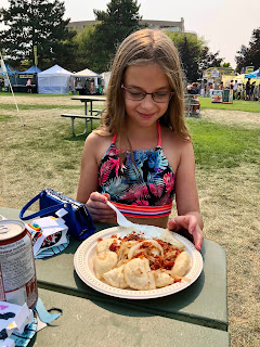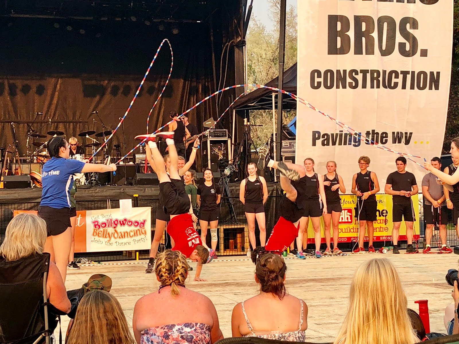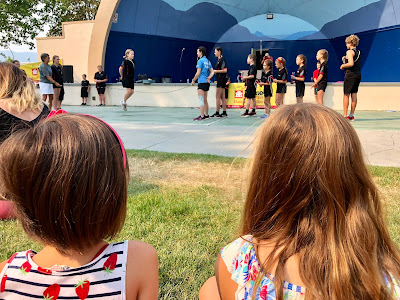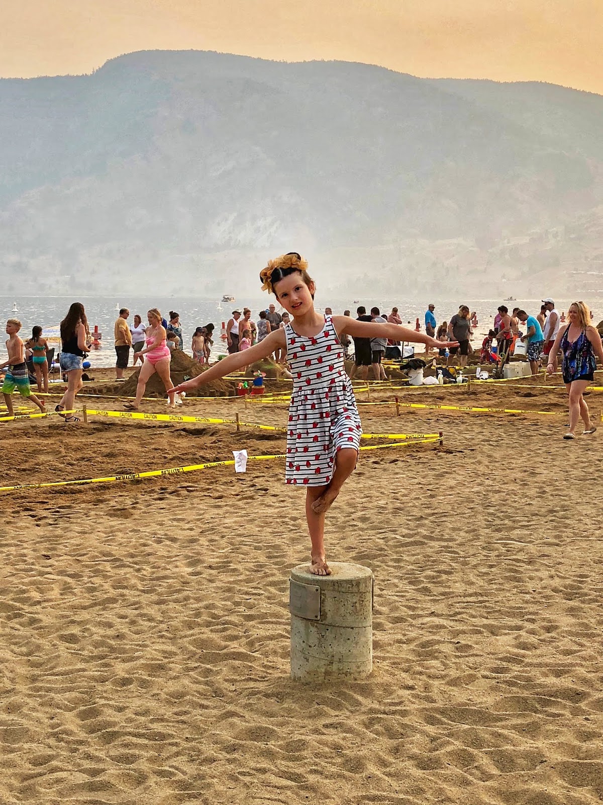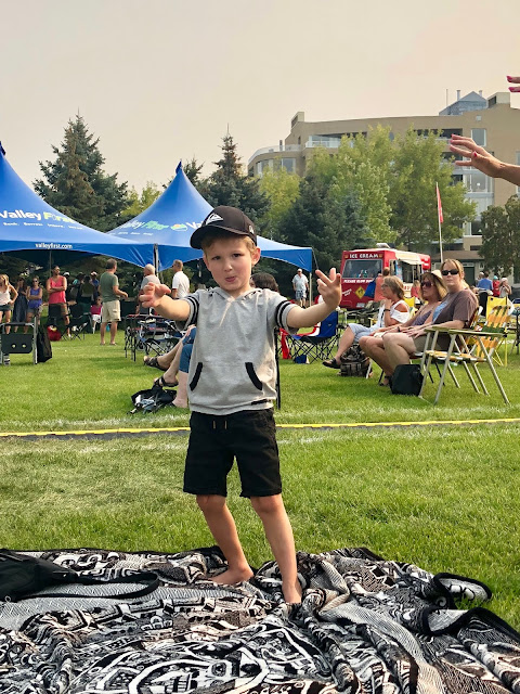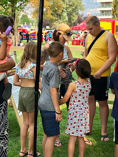Peachfest Day 2 started early in the morning. We went to the kids stage and watched Kiki the Eco-Elf! We also watched the Black Widow Rope Spinners, played in the petting zoo, the reptile petting zoo, the coding tent, and played with bubbles and balloon animals! We then headed over to the main stage to watch the Mega Motocross riders. It was so hot out! We then headed to the beach to cool down. After that it was SBean’s shining moment to take the main stage with her acro jazz group, the Circus Cats! She was so nervous but did so well! We listened to some good music and then headed over to Skaha Beach to see the Sandcastle competition. HBear went back to Peachfest to watch April Wine with Dad to end their evening.