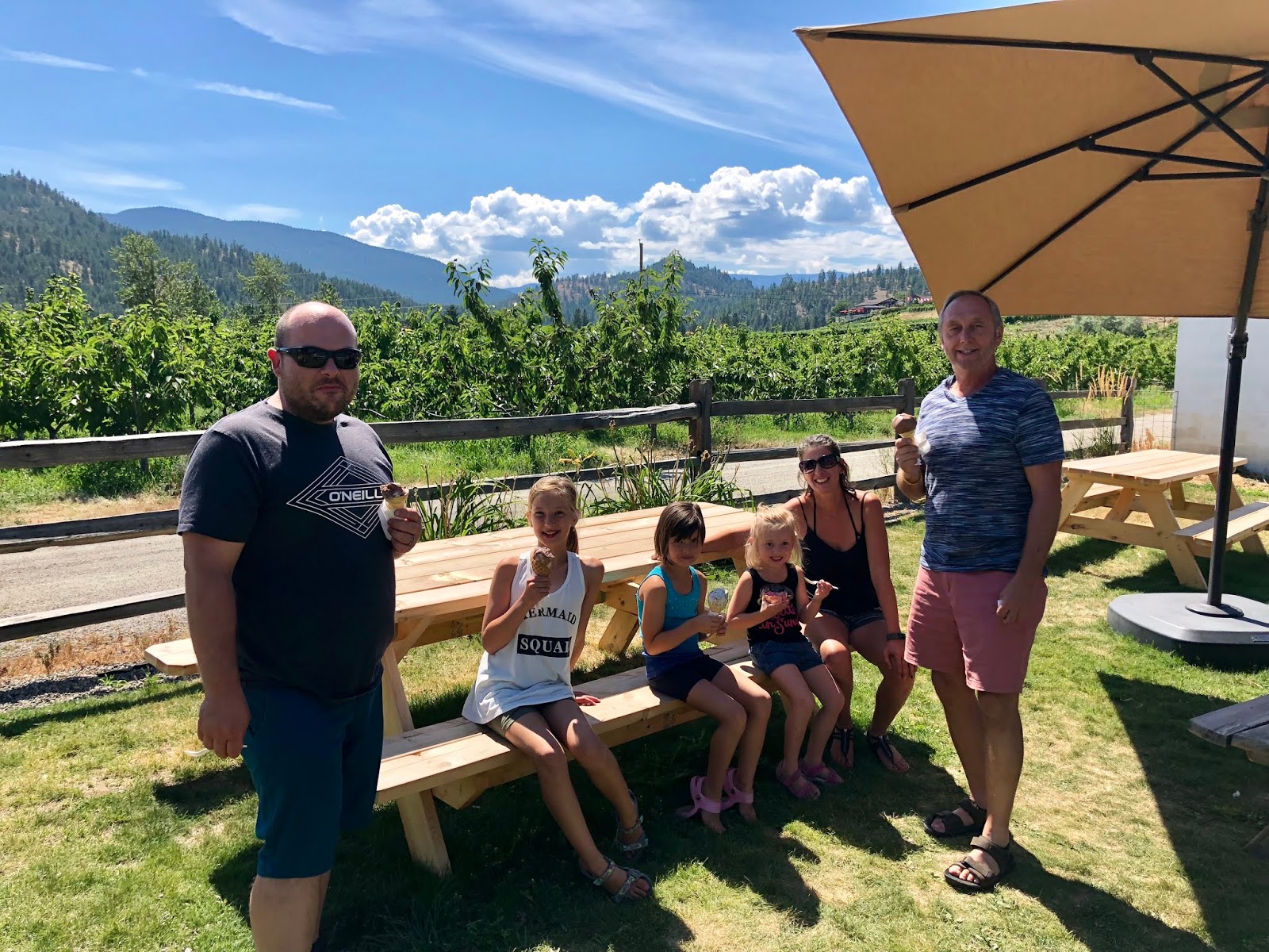 A few days later my Sis, BIL, SPea and CPatch came for the August Long! Sis kicked my ass again with her Beach Body exercising we played cards and roasted marshmallows while sipping champagne by the fire! We went to The Farmers Market, had more pool days and took a drive through Summerland tasting cider, fruit wine, and craft beers!