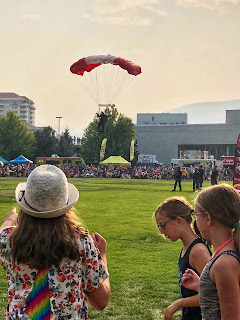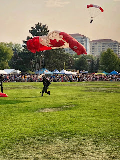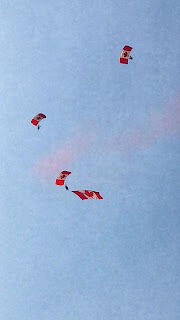 The Opening Day was amazing! KBesty joined us and we watched the Skyhawks leap out of planes with their Canadian flag parachutes! It was phenomenal! We watched the Black Widow Rope Spinners and our friends Three Scotch In played on the main stage! Then we hit up the Midway and enjoyed rides before we settled in to watch Kim Mitchell take the stage! The Girls had a backyard campout to end the day!