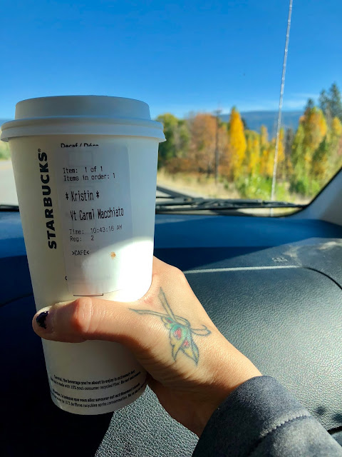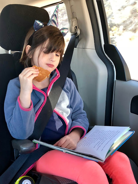 On Sunday we went to Kelowna to pick up some Halloween costume items! Of course we stopped at Starbucks first and the Girls HAD to bring their books!