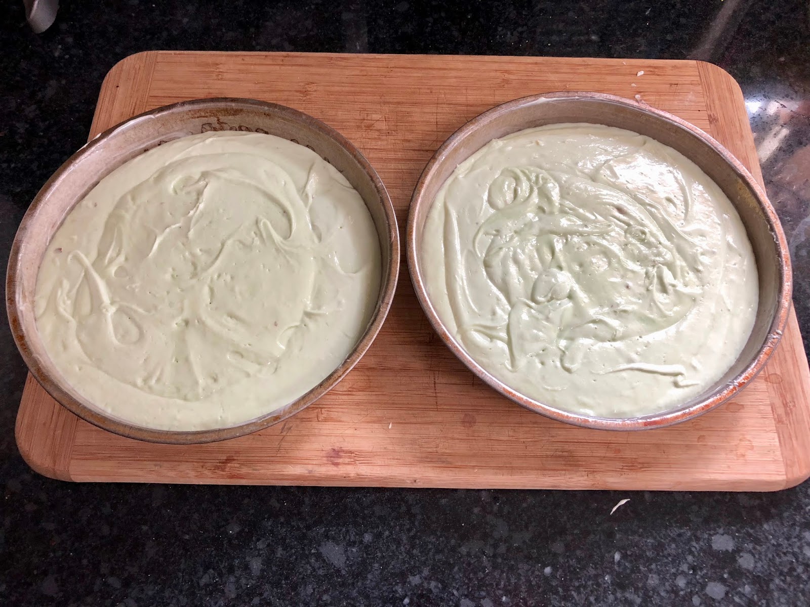 Butter and lightly flour 2 round cake pans. Evenly pour the cake into the 2 pans.