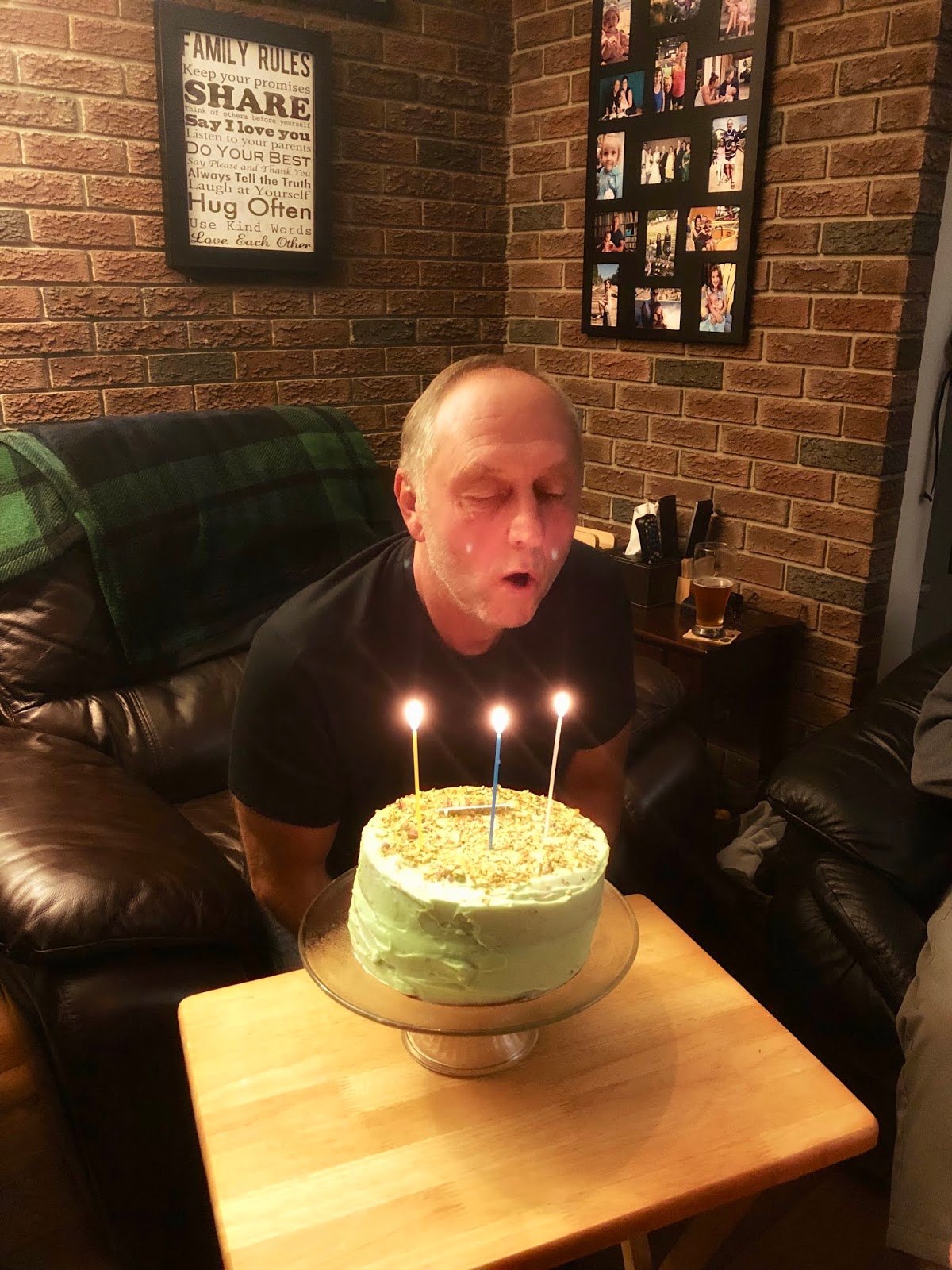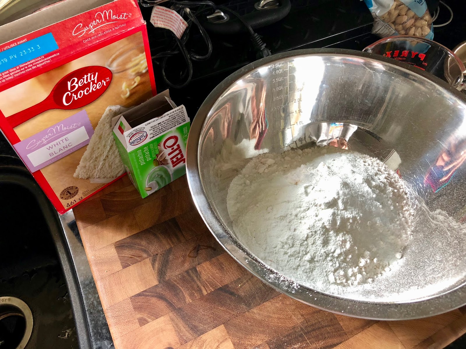 Guess who turned 63 this week? DAD! It was on a Thursday and we had dance, school and work so we played it pretty casual. I made him a special dinner (coming next week) and my InLaws came over after dinner for cake and presents! Dad isn’t a cake guy. Usually I make apple pie or a giant chocolate chip cookie or some other desert that isn’t birthday cake. This year I was scrolling through Pinterest and saw a cake I thought he just make like! Dad loves nuts. All types of nuts (insert joke here 😂). They are his weakness. So the Girls and I baked him a super simple Pistachio Cake! It was really tasty, super moist and took almost nothing to make! That is saying a lot because I am not a baker by ANY means! This recipe stood out to me because it uses a boxed cake and adds ingredients to make it your own. Enjoy!