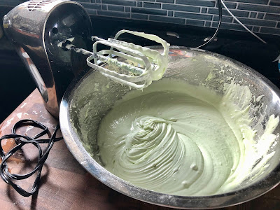 In a mixer, combine the whipping cream, powdered sugar, salt, and last box of pistachio instant pudding mix.