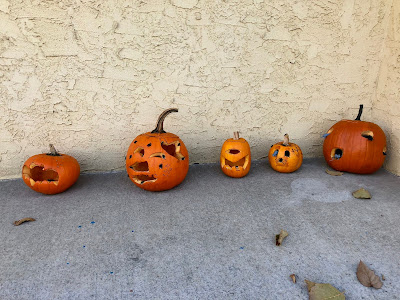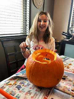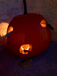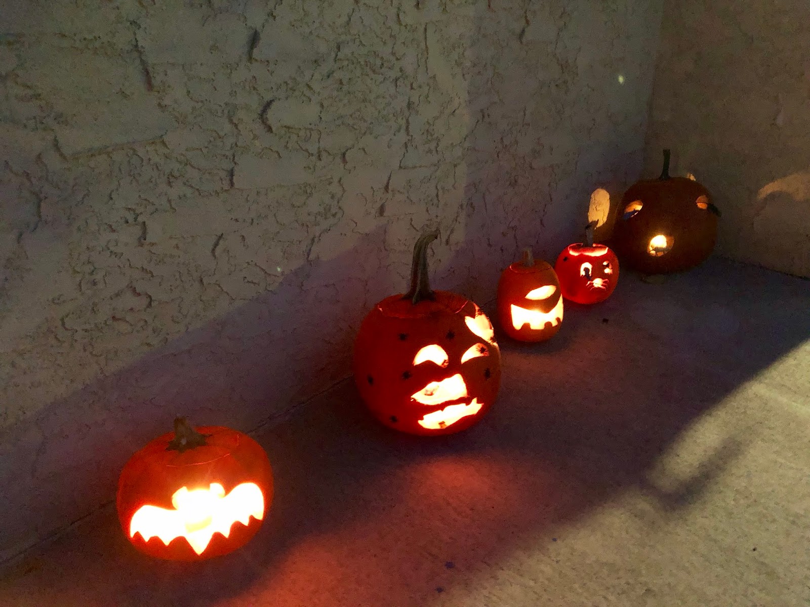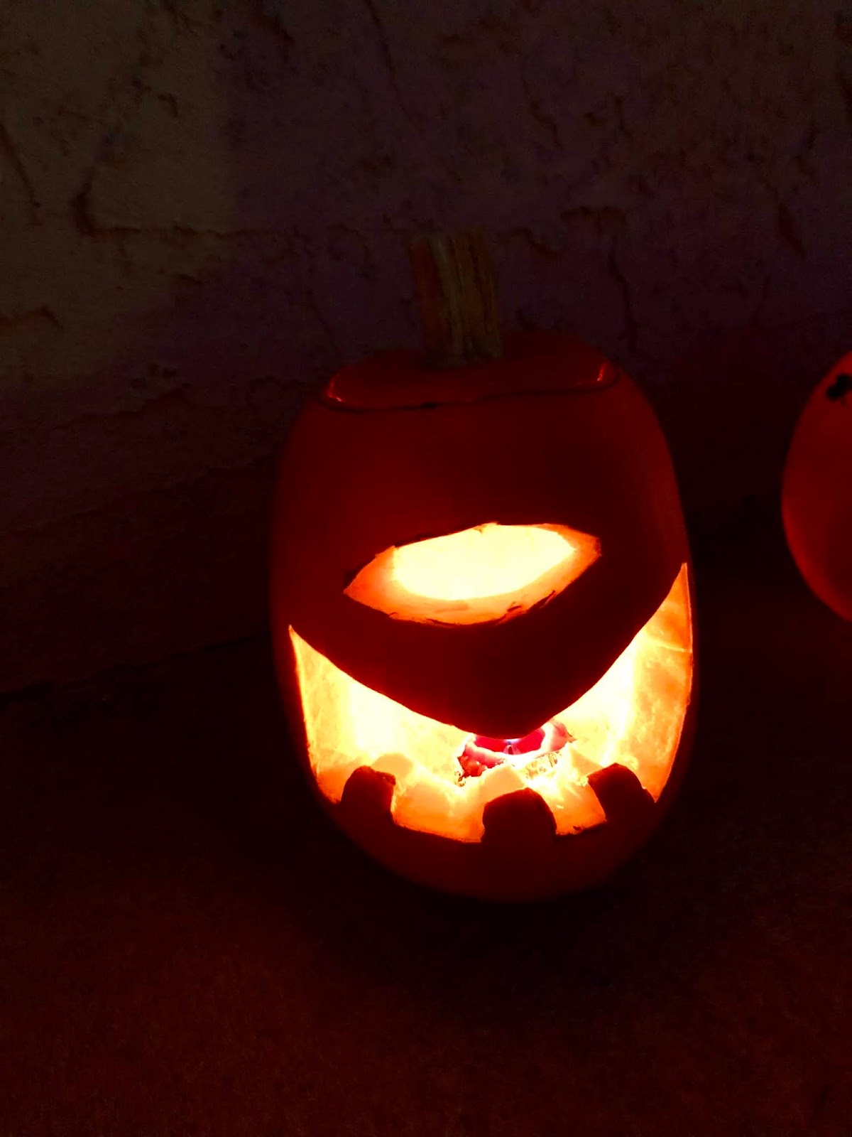 We started our week carving our pumpkins! This year we decided to freestyle it and we didn’t use any stencils 😳. It was tough for me to be creative without help lol so I cut out holes and stuck rubber rats in each hole 🤣.
