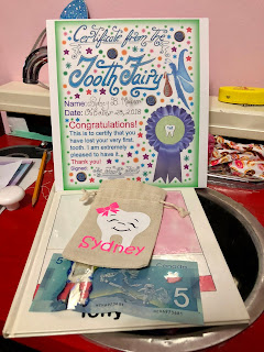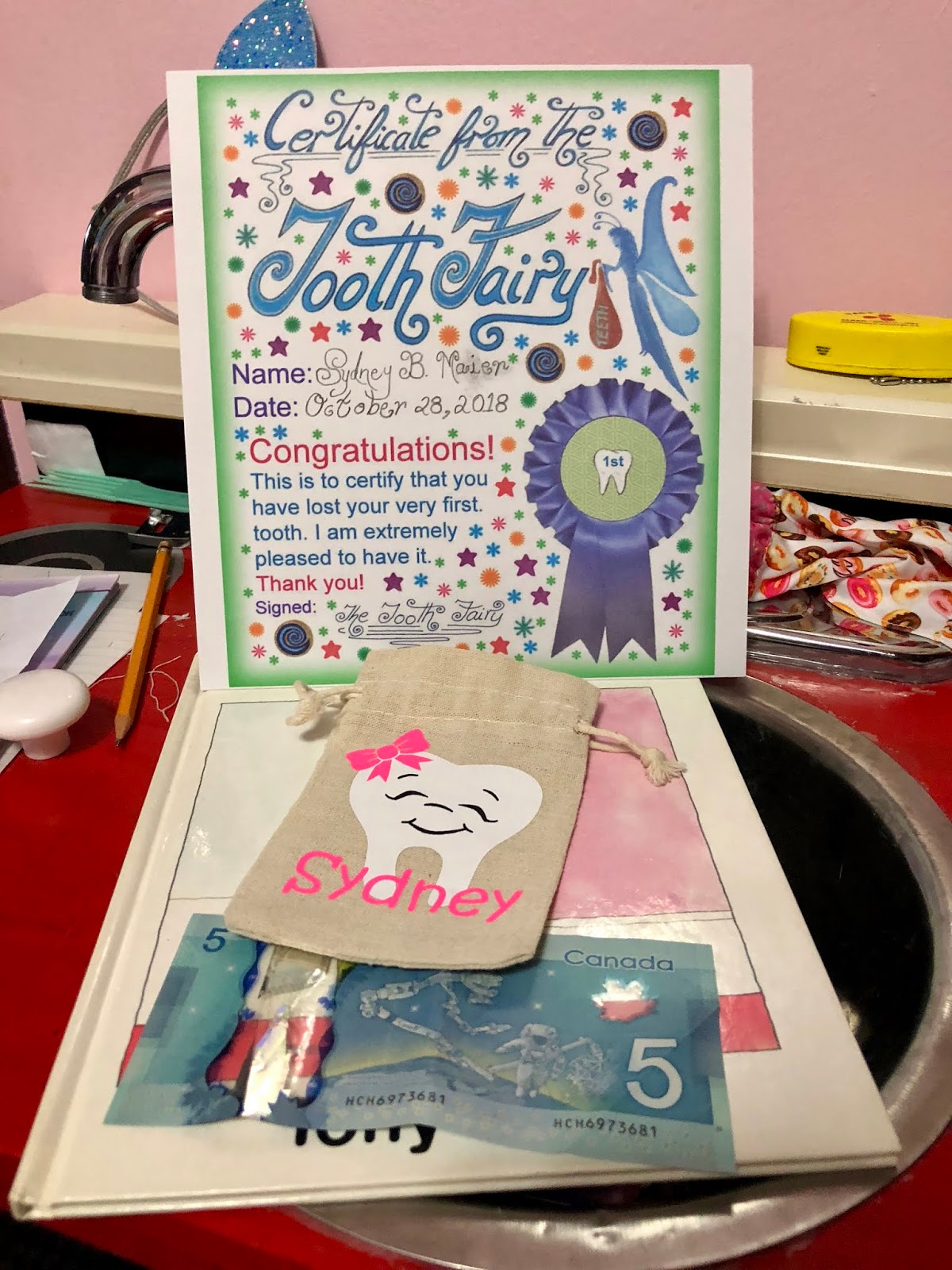 This weekend we went out to film a short video for a contest we entered. On our way home POP SBean lost her very 1st tooth!!!! She was CRAZY excited! She left the Tooth Fairy a note and The Tooth Fairy left her $5.00 AND a very official certificate!