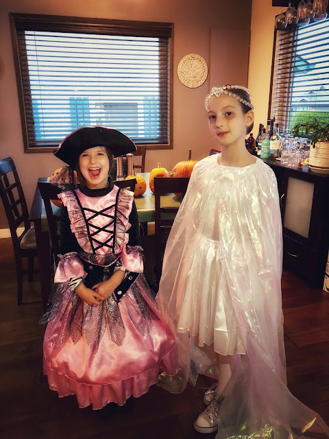 This year SBean wanted to go as a pirate. Years ago HBear had gone as a pirate and I bought her a big hoop skirt costume. I was smart 😆 and didn’t put it in the dress up bin so when I brought it out for SBean it was brand new to her!