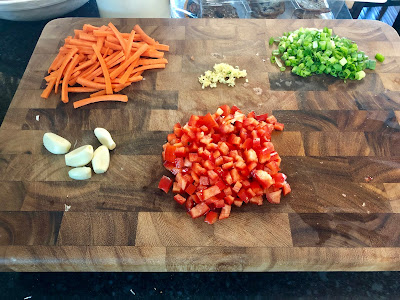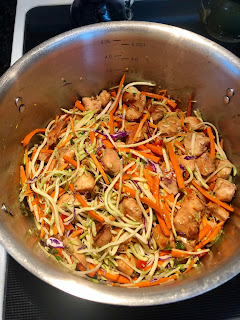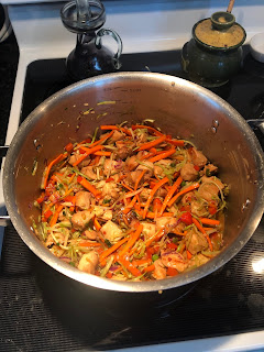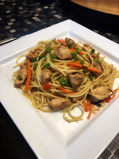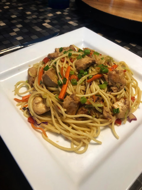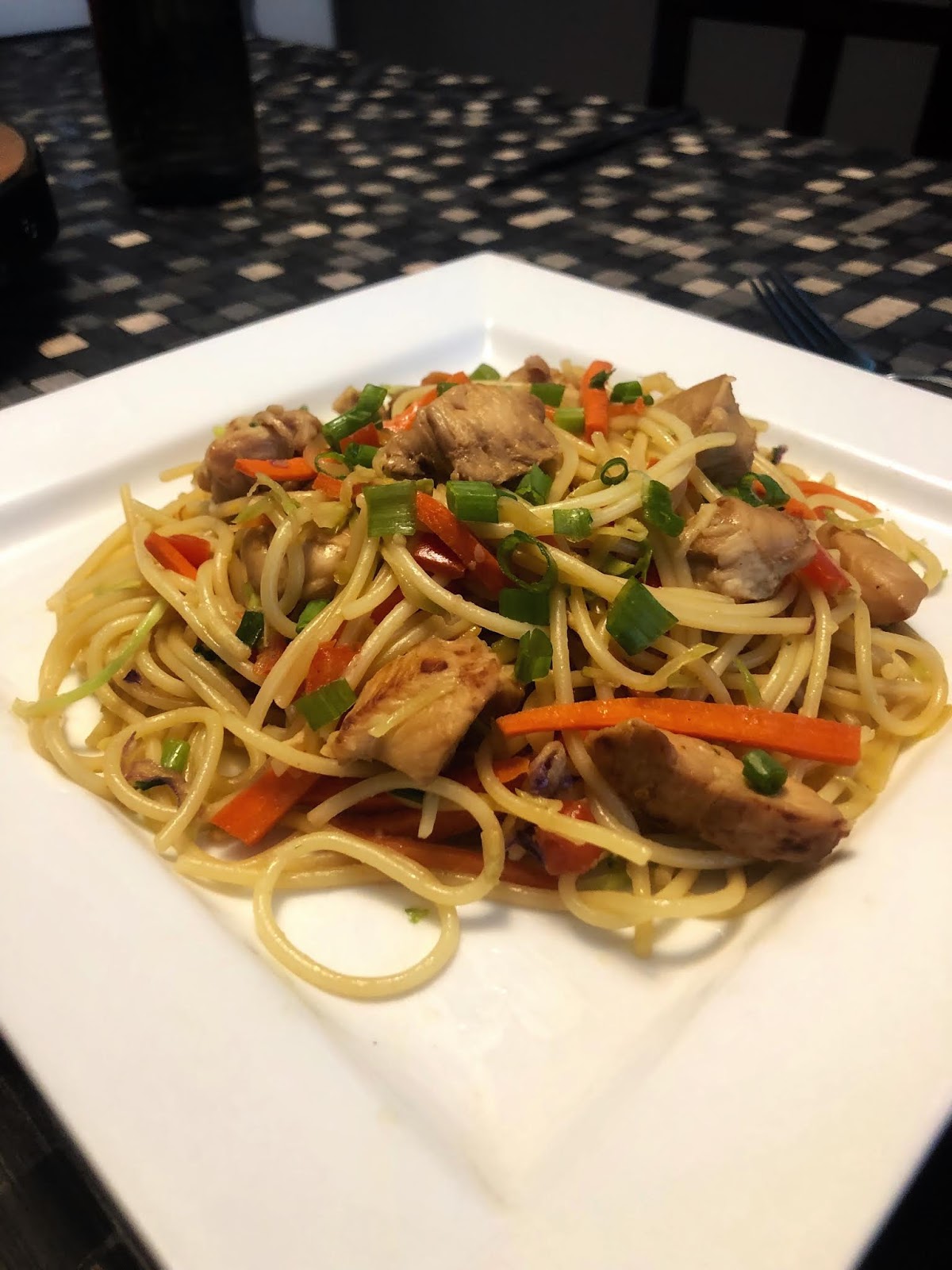 I haven’t been cooking much lately. Between visitors, work, and grilling packets of food so that we can enjoy the sunshine, I don’t have very many new recipes! This was a delicious licious noodle dish that I made a while back! It has a ton of flavor, colourful vegetables, and it’s easy to make! Please enjoy 😊