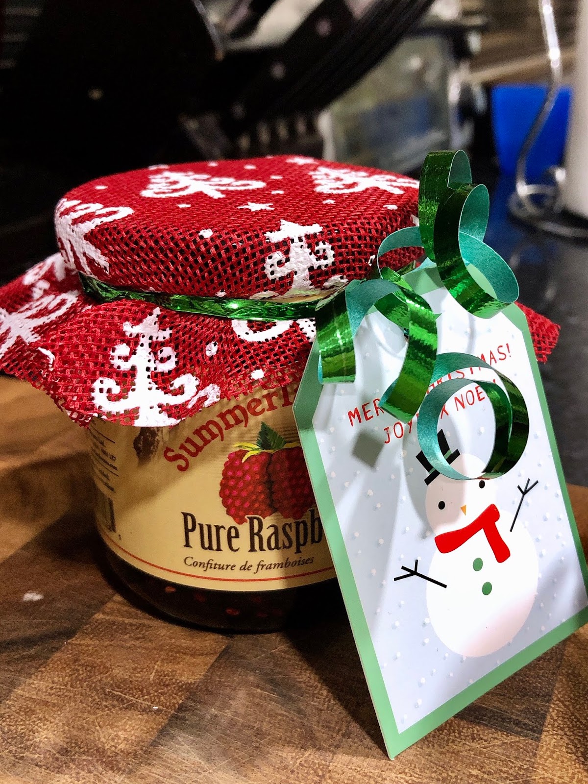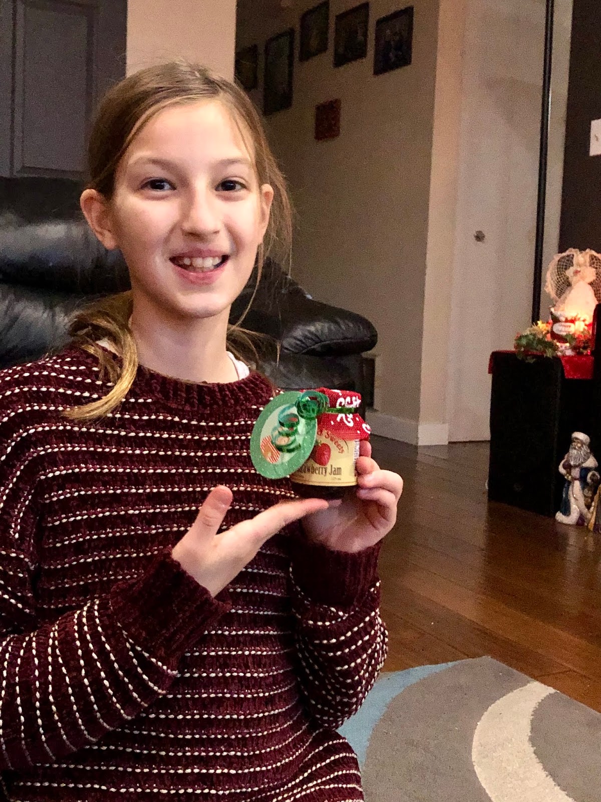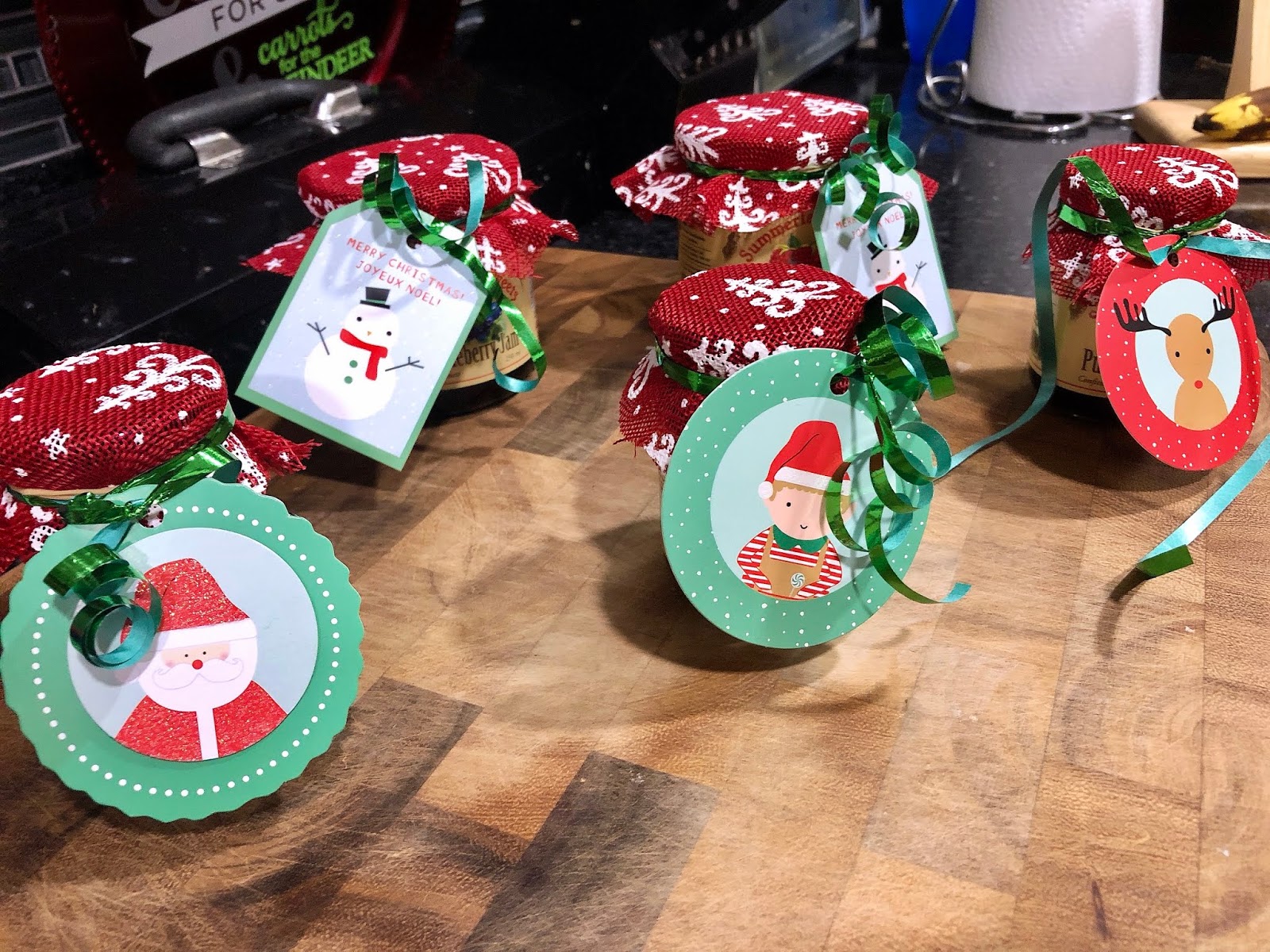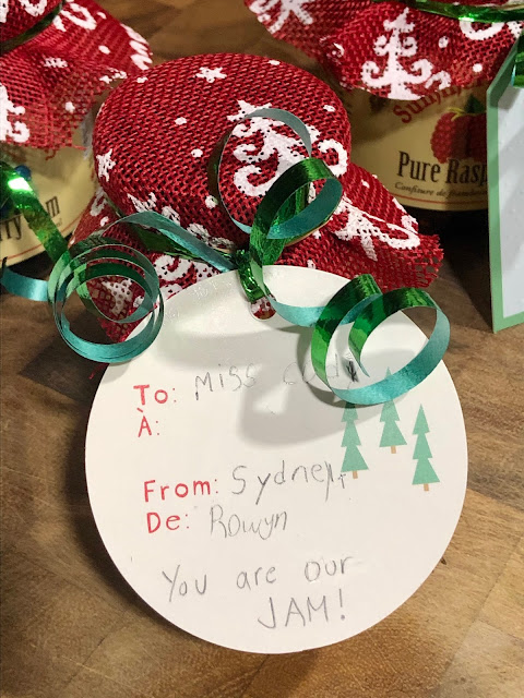 Each year we try to do homemade gifts for the teachers as well. Not every year because sometimes time just doesn’t allow for it but this year we came up with a great idea! Teachers for us can be quite expensive because we like to recognize the Girl’s dance teachers as well. This year we went to one of our local markets, Summerland Sweets and bought each of the Girl’s teachers a jar of locally made jam! I bought some burlap from the dollar store and we used Christmas tags, ribbon and elastic bands we already had! On each of the tags the Girls wrote, “you are my jam”. Super cute!