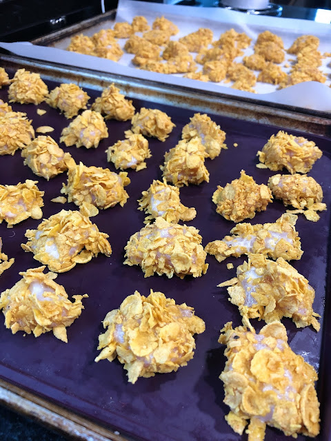 5 cups corn flakes cereal, crushed lightly