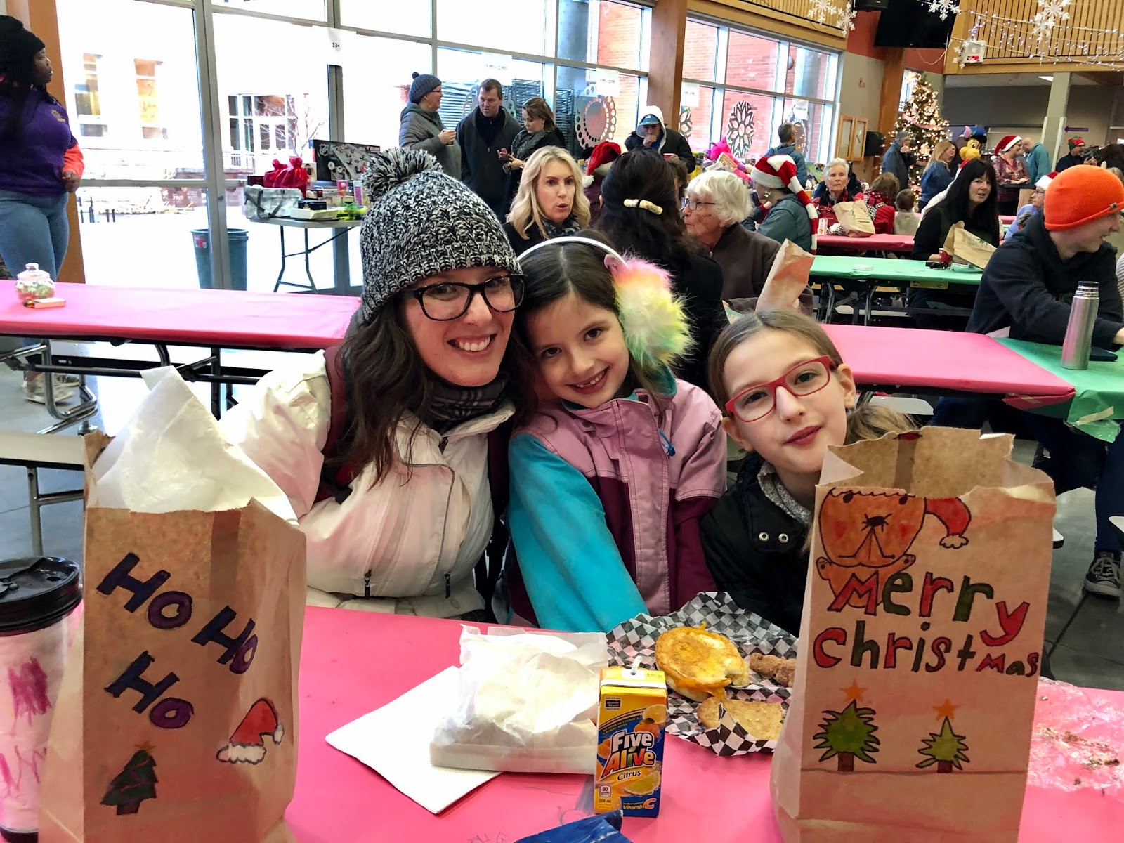 Ninja and I took the Girls to Pen High for the annual Toys For Tots To Teens Christmas breakfast. We each brought a new gift and we received a delicious breakfast in return! While we ate we listened to carols being sung by a local elementary school and we all had a great time! It was the perfect way to start our day before school/work!