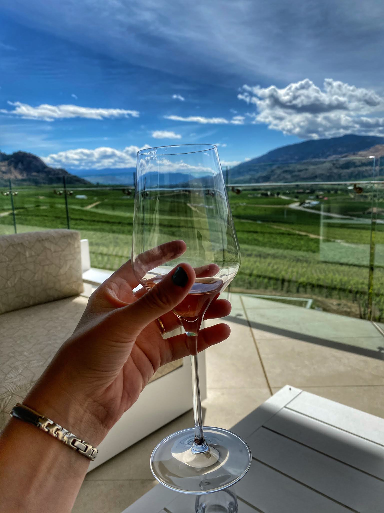 We started with a private winery tour of Phantom Creek Estates Winery in Oliver. It is stunning! We started with a delicious glass of Pinot Gris and then our tour guide took us out to the vineyard to see the vines and the gorgeous art. We came back inside and learned all about the state of the art under workings of how the wine is made! Our tour guide was amazing!