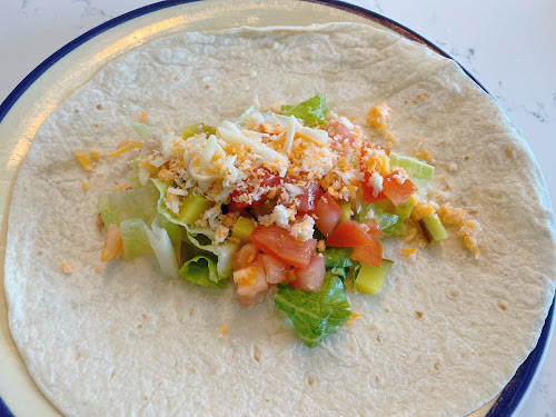 Take a tortilla and line the middle with a small amount of cheddar cheese.