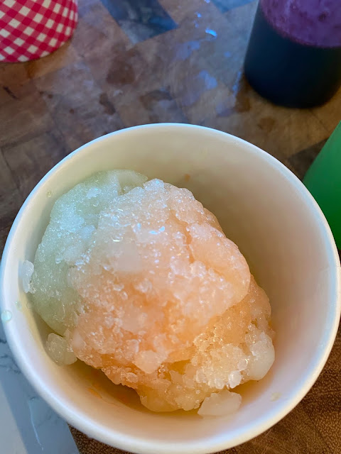 We have been trying to tick off summer bucket list items like making rainbow snow cones! The Girls made 5  different fruit simple syrups and we made snowcones! I am still doing Morning Meltdown 100 and I just finished phase 1! SBean had a tummy ache and a low grade fever for the latter part of the week, it was very very hot last week and we think she may have got a little bit too much sun. She rested at home with me while HBear visited with my Cousin and her family. Her and my Cousin’s daughter love seeing each other in the summer… just like we did when we were kids!
