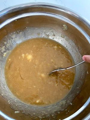 In a large bowl, mash the ripe bananas with a fork. Add the melted butter and oil and stir until combined. Stir in the brown sugar, egg, and vanilla extract. Stir until smooth.