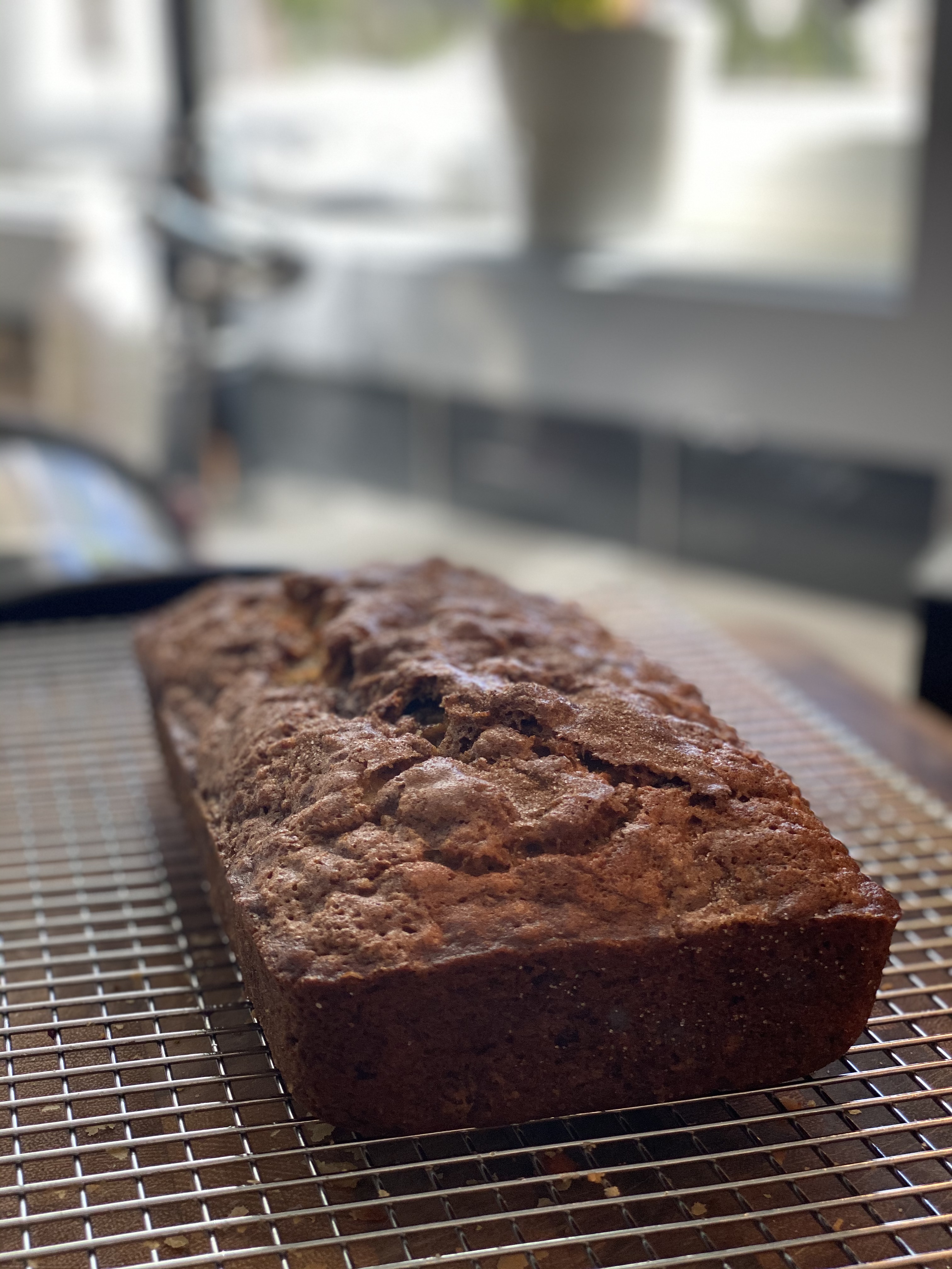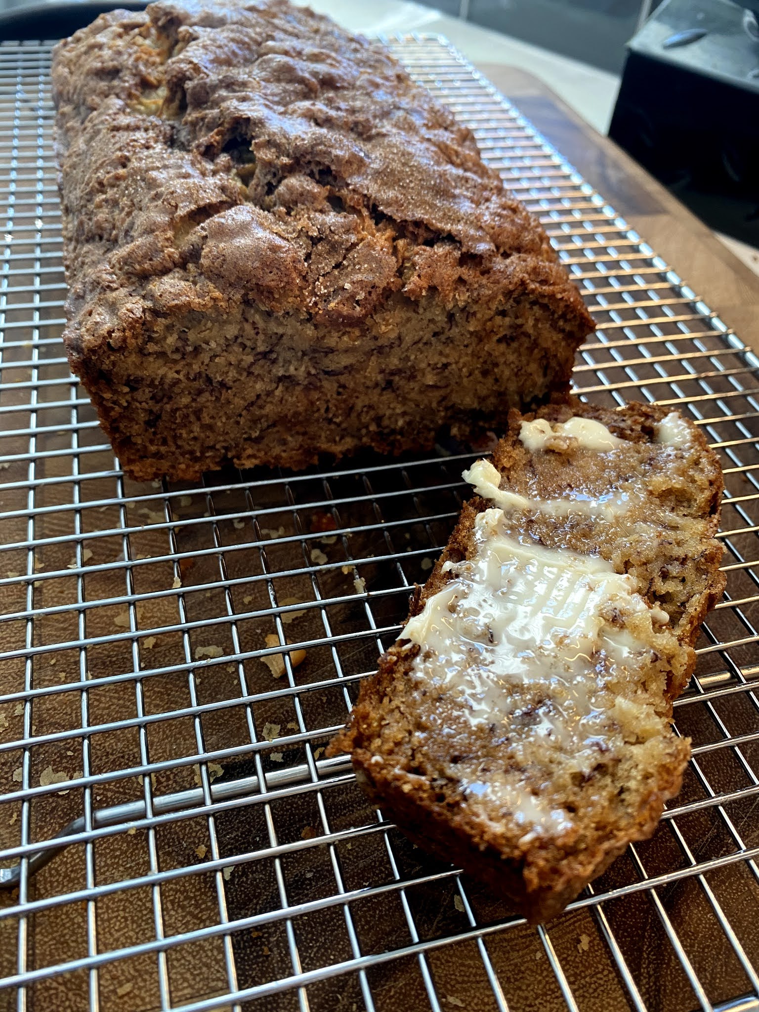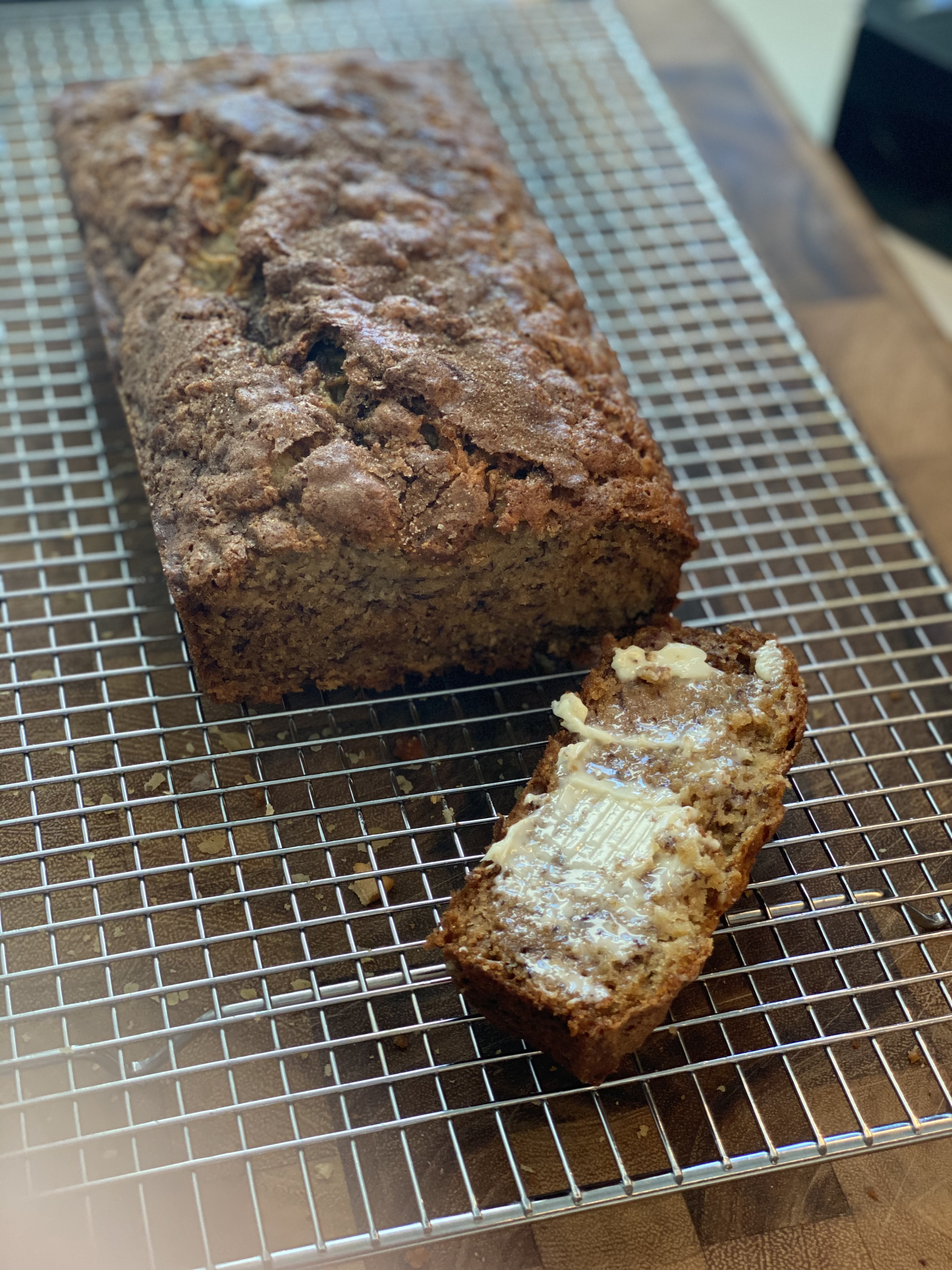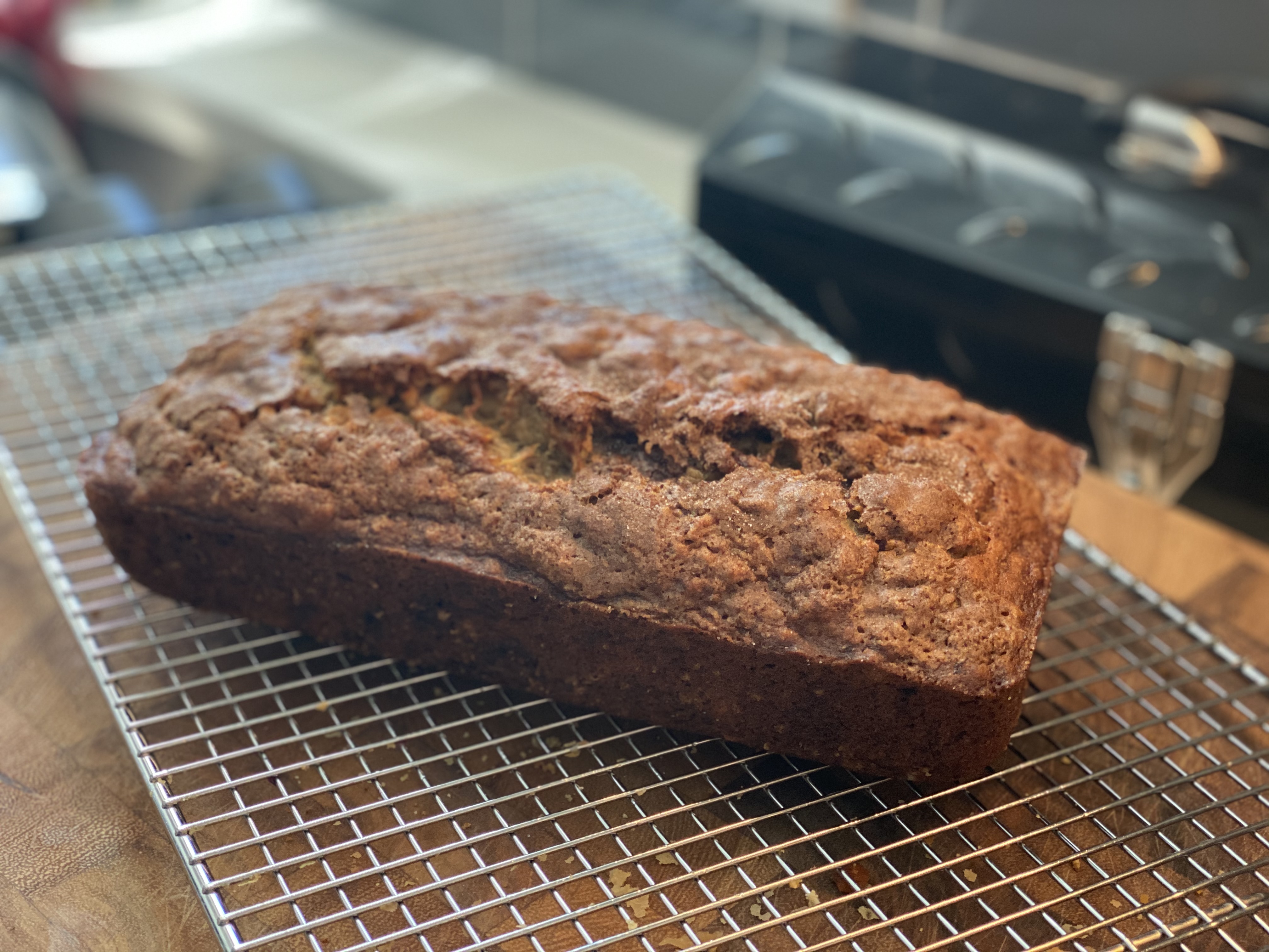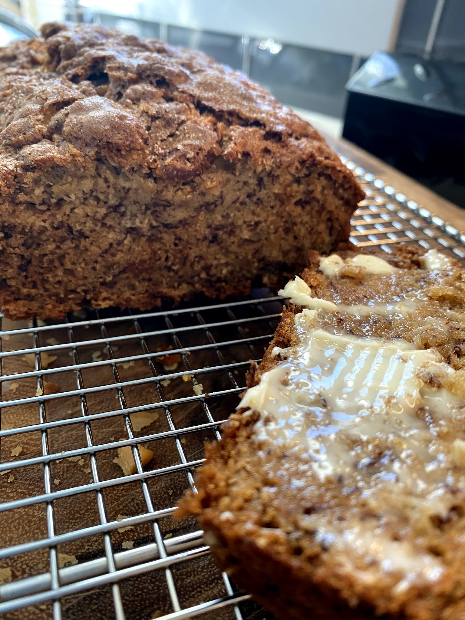 Let the bread cool in the pan for 10 minutes. Run a knife around the edges of the bread and carefully remove from the pan. Let the bread cool on the wire cooling rack until slightly warm.