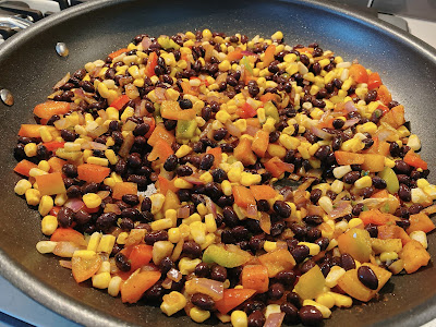 Add corn and black beans and mix.