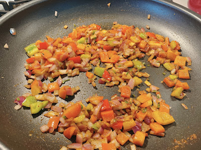 Heat 1 tablespoon oil in a large skillet over medium. Add the onions & peppers and saute until softened, about 8 minutes.