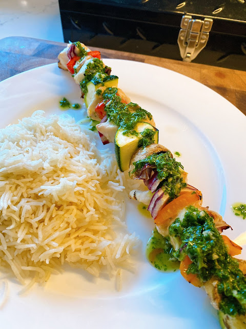 We like to eat light in this heat. After a day at the beach with HBear I made Tequila-Lime Chicken Kabobs with rice and it was EXACTLY the right dinner! We loved the bright flavours and the lightness of the entire dinner. The veggies were crispy, the chicken was juicy and the sauce was a flavour bomb! Better yet all the herbs were from my little patio garden 💚.