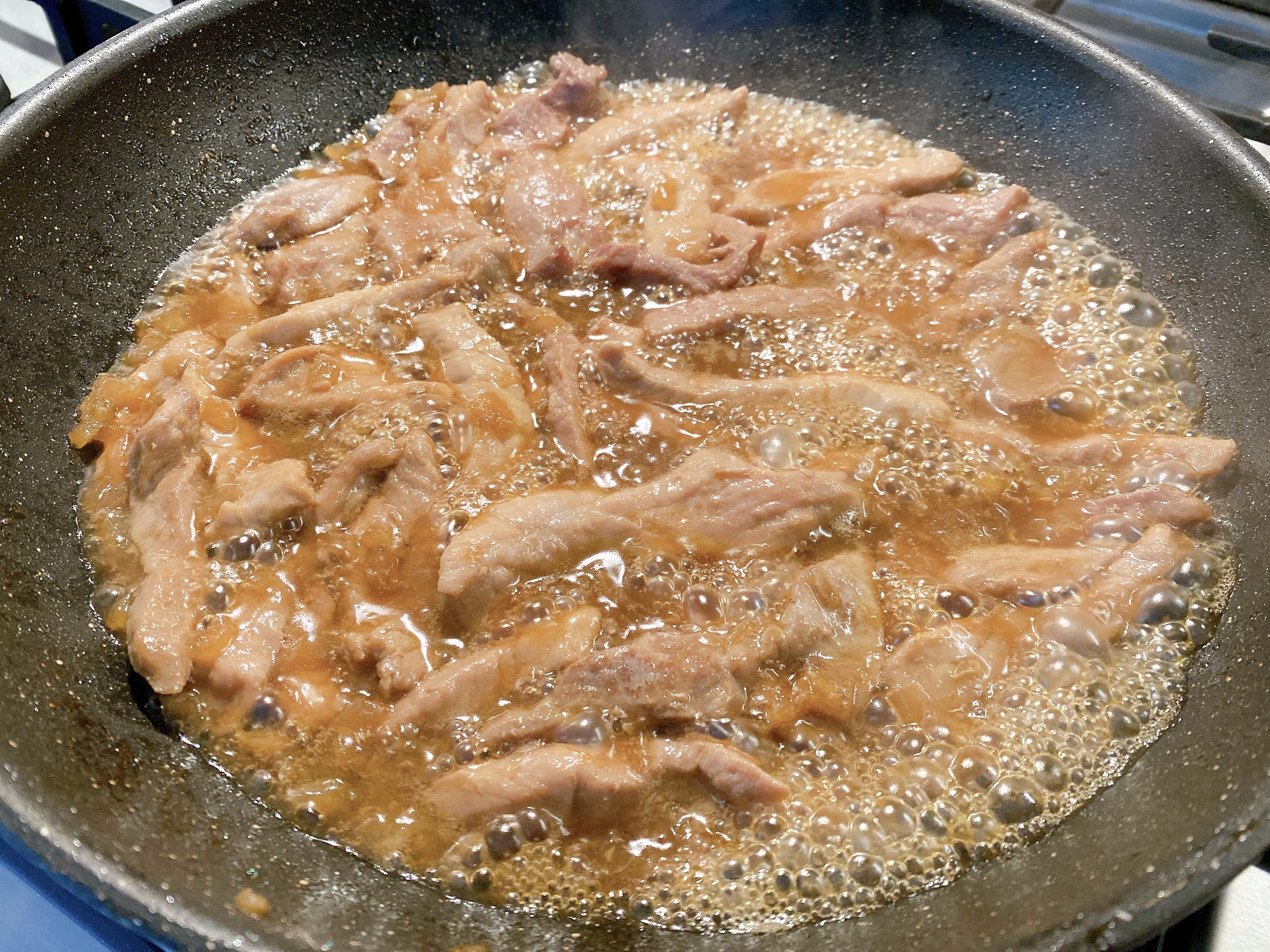 Add 1 cup of water, soy sauce, sugar and fish sauce, bring to a light boil and then turn down to medium-high for the next 30 minutes – 1 hour. Add more water throughout the hour as liquid evaporates, until the sauce is a dark brown caramel colour.