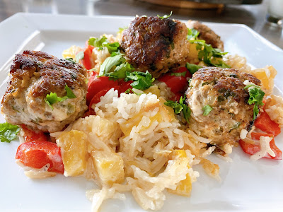 5. Social Media, Chicken Meatballs with Coconut Pineapple Rice & Zucchini Double Chocolate Muffins HERE