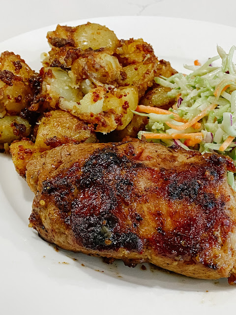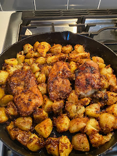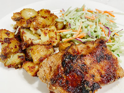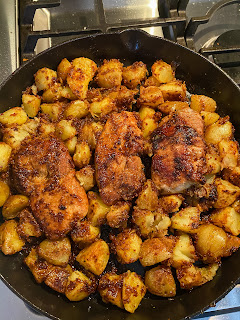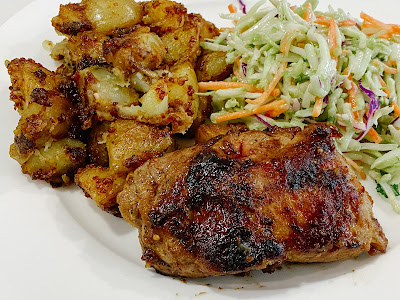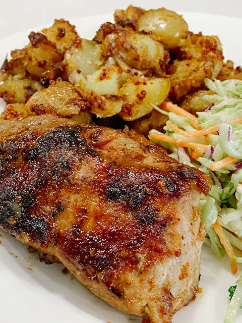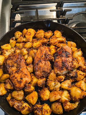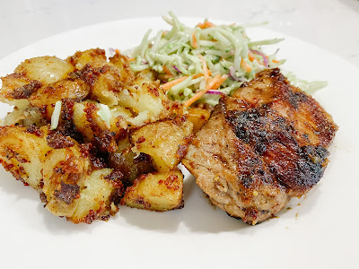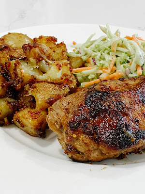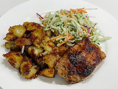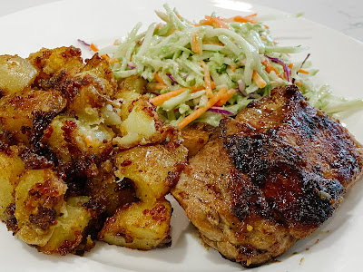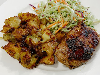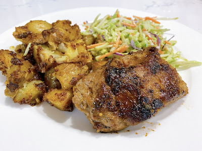 Par-boil quartered potatoes in boiling salted water for 8 minutes. Drain and set aside.