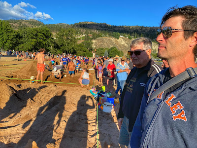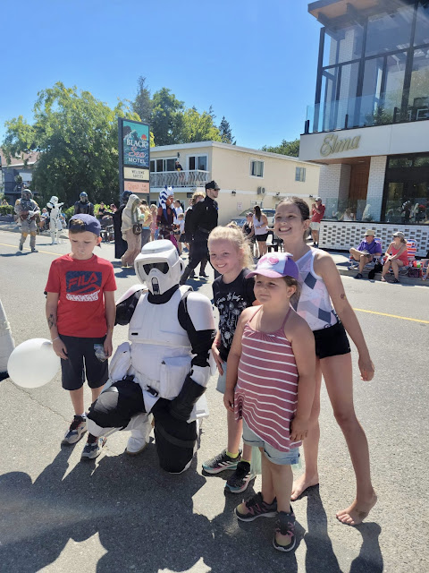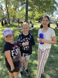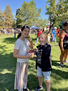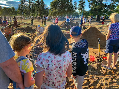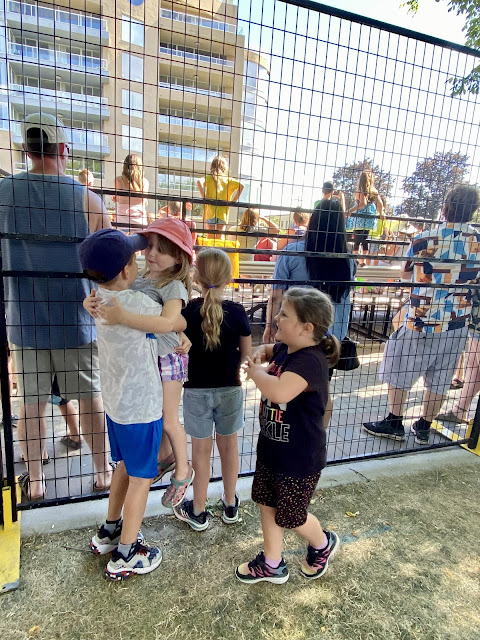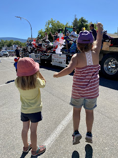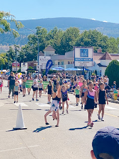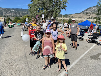 On Thursday HBear was sad to miss her chance to perform with her dance group on the big stage at Peachfest and we had delicious BBQ ribs with sauce from Slow Bottled Sunday that we had bought at the Farmer’s Market last week! After dinner we met up with everyone at Skaha Beach to see the Sandcastle Competition and have some ice cream at the park. SBean and SPea had a hottub and a sleepover while PrettyP and CPatch had a play and a sleepover too.