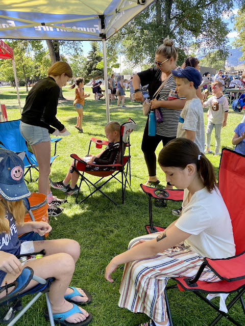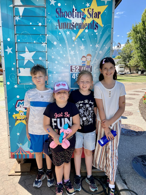 While I took some much needed rest, they went swimming, to the Enchanted Forest, watched movies, and played hard. Tuesday night Ninja met our BIL halfway to pick up HBear who came home sick. After a Dr appointment the next day, we found out she had strep throat and pink eye. Horrible timing as she had to stay in bed for the rest of the week. The rest of them went to the Kangaroo Creek Farm before coming home to see the Skyhawks Parachute Team kick off PeachFest with Grandma, Grandpa, Auntie and JQ!