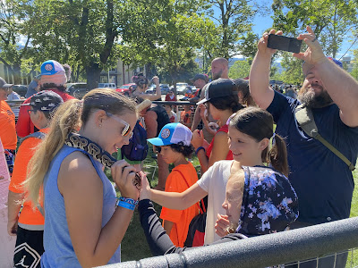 On Friday we woke up and HBear was still under the weather. The rest of us went to the Kids Zone and got glitter tattoos, ate Timbits, watched performances, got balloon animals, jumped in the bouncy castles and visited with the reptiles. The Kids played the drums and then we walked over to see the rides. SPea even found $50 on the sidewalk!! After lunch we went back to the Festival and watched the Motocross performance and ate dinner. We listened to the music of the Beatles cover band and then we went to the rides! The Kids had the BEST time. I left early to go hang out with HBear. Poor Kiddo. I brought her home her favourite Wendy’s and a Frosty. She ate while we watched Big Brother together 💛.