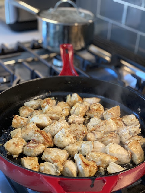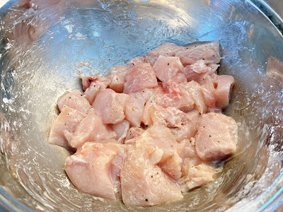 3 chicken breasts, cut into cubes