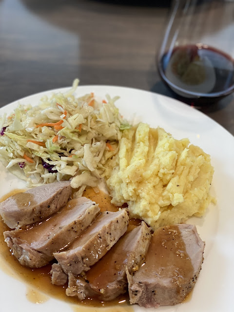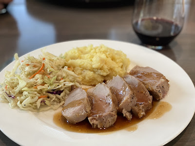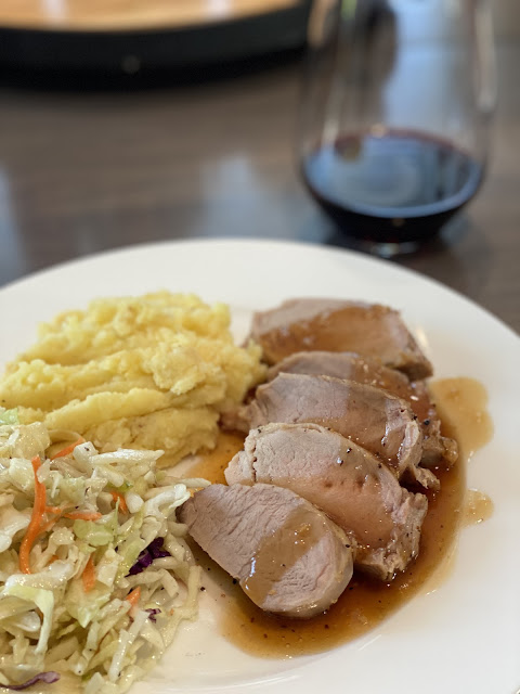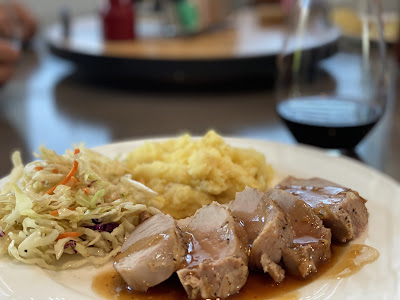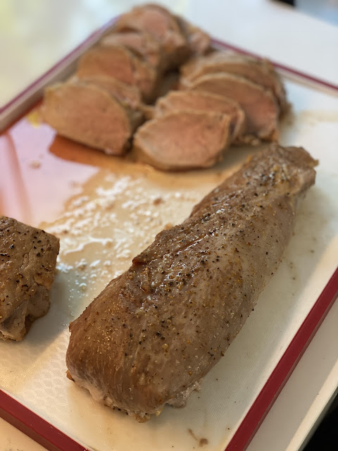Slice pork tenderloin and serve with sauce.