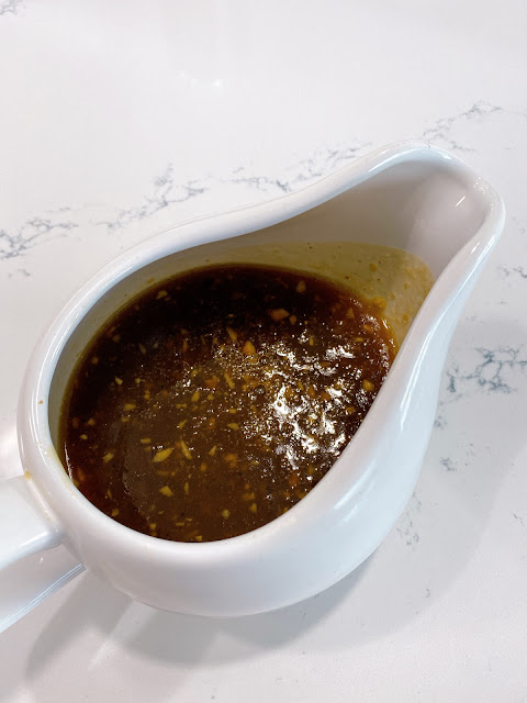 Whisk together honey, broth, soy sauce, garlic, vinegar, salt, corn starch and red pepper flakes.