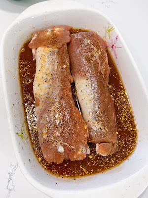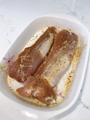 Place tenderloins in baking dish, brush oil or spray with THIS amazing glass oil spay bottle and season all over with seasoning salt.