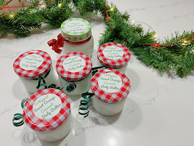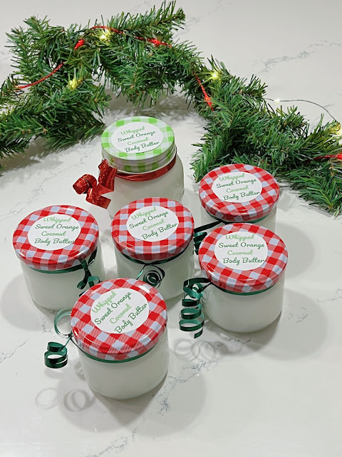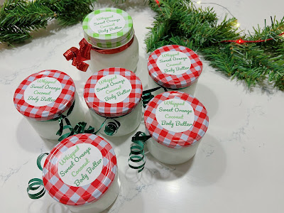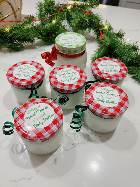 SBean has been BIG on a homemade Christmas this year. When we told them that this Christmas will be smaller than the family is used to because I’m not working as much this year, she insisted on doing a Secret Santa Homemade Gift Exchange for our immediate family! I can’t wait to share what I have planned but not until after Christmas!!!! 😆 We also made gifts for all of the teachers and coaches in our lives! I am a BIG fan of homemade gifts. They are so much more personal and directly from the Kids. I am also a big fan of natural products, especially beauty products. I’ve always tried to make my own. Last year, we made all of the dance teachers Peppermint Coconut Body Scrub! This year we made Whipped, Sweet Orange Coconut Body Butter! I love coconut oil! I use it for so many things, but I especially love it as a body oil. It smells great, it’s super moisturizing, and it’s natural! However, sometimes coconut oil hardens so when I read a review of a woman that whipped her coconut oil to keep it soft, I knew we had to try it! We added some sweet orange essential oil and put it in festive jars and hopefully my Kid’s mentors will get a lot of use out of this DIY gift!