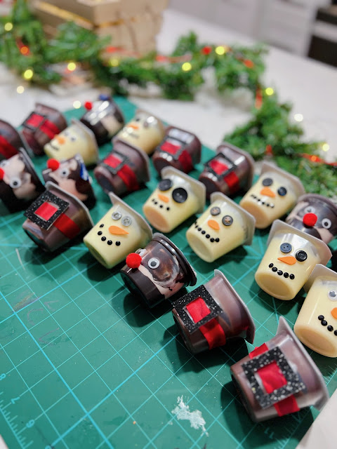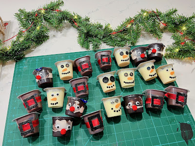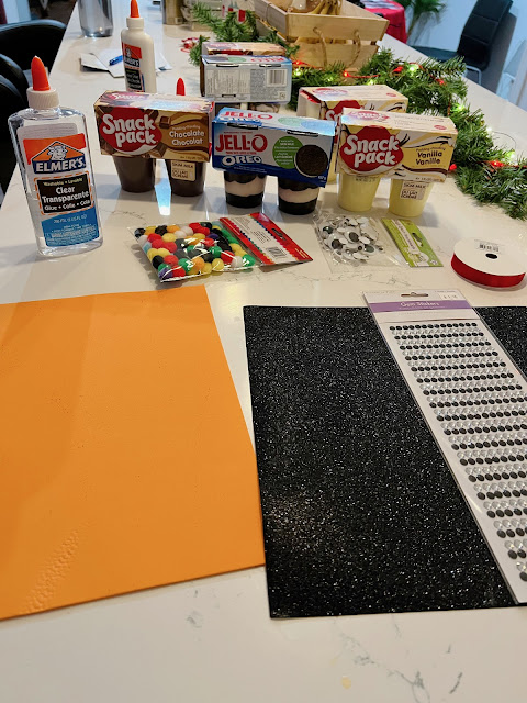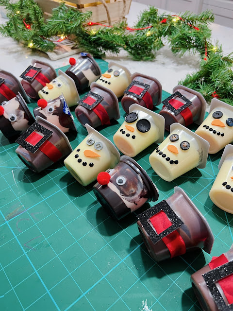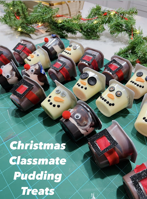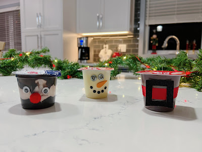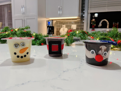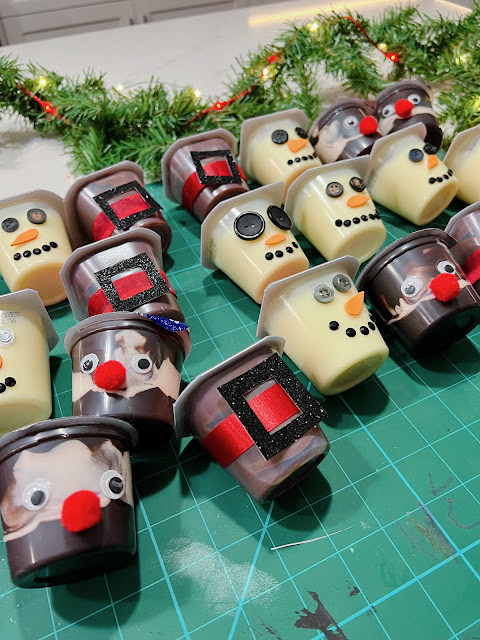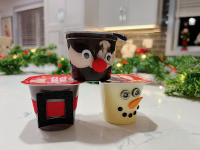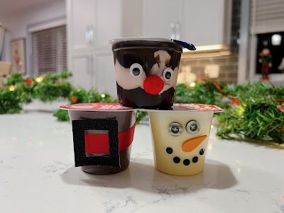 Another last will be Christmas treats for all of SBean’s, classmates. We started the tradition of handing out holiday treats when HBear was in kindergarten. Over the last few years, we were unable to continue our tradition because of Covid, but this year, we are allowed to send treats again! This year we decided to buy SBean’s 3 favourite pudding flavours and decorate them! We made Rudolph, Santa’s belt, and Frosty! This was a super simple craft, and didn’t cost us a fortune because let’s be real, handing out treats to 23 students can add up!