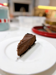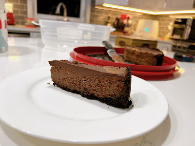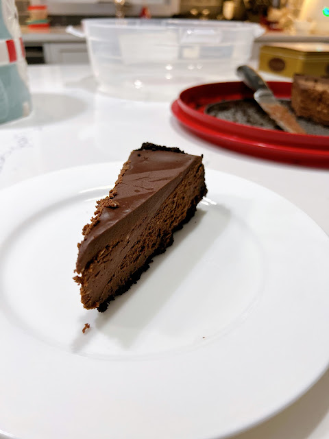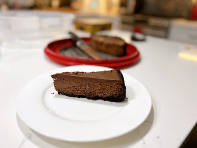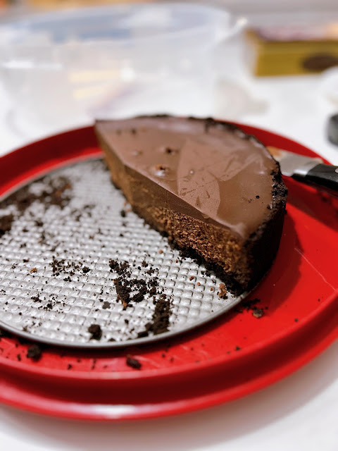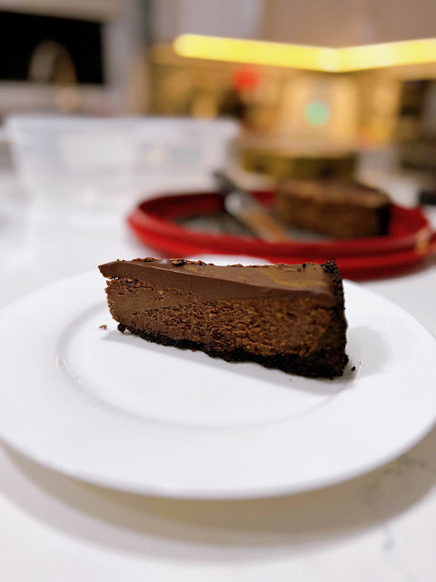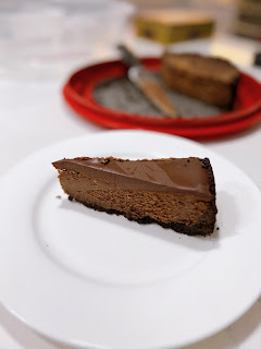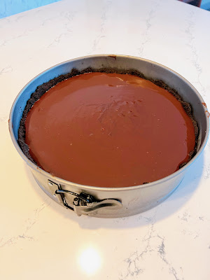 When the topping is set and cooled again run a thin knife around the sides and remove the springform pan sides.