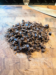 Melt 10 ounces bittersweet chocolate and set aside to cool.