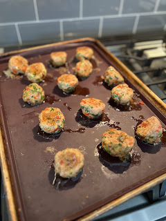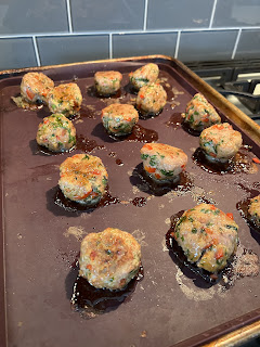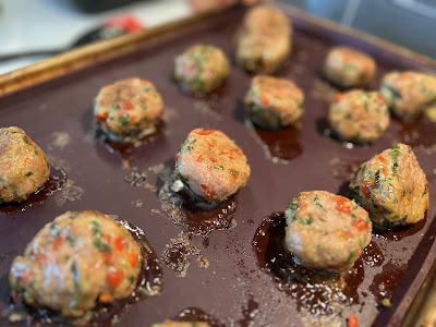 After 10 minutes in oven, remove meatballs and dip each meatball into the sauce then return to the baking pan. Bake for another 2-3 minutes until meatballs are nicely glazed.