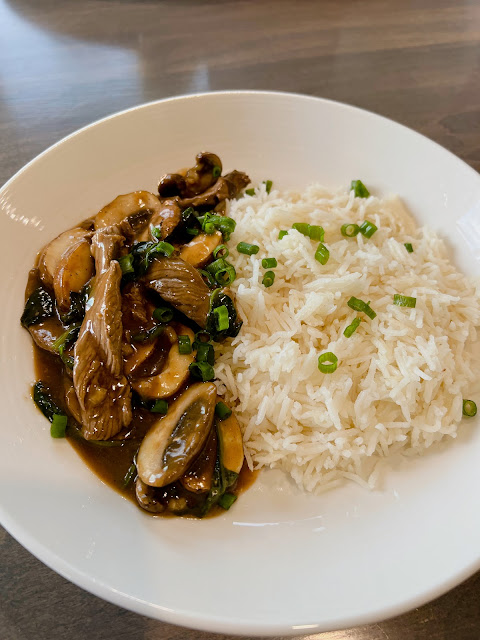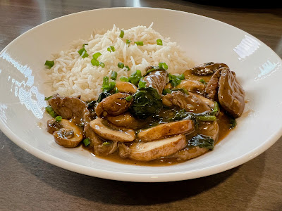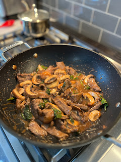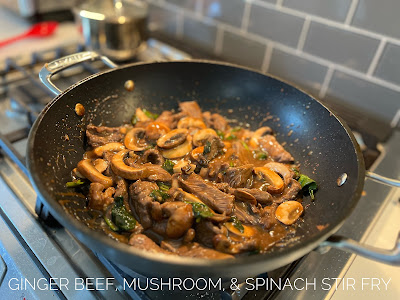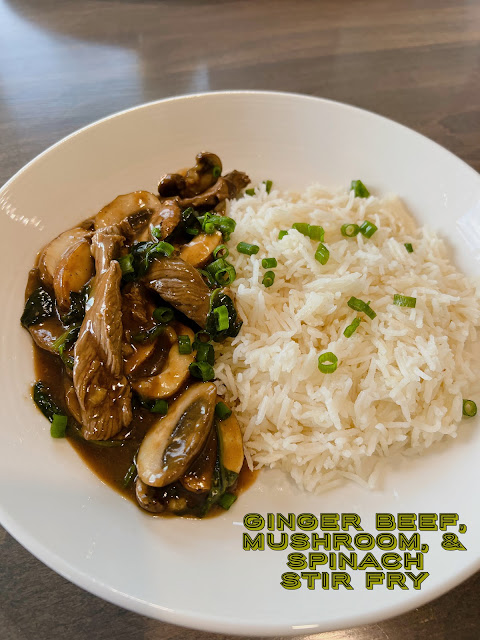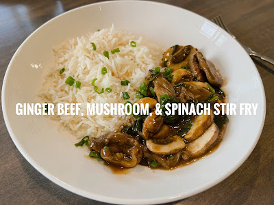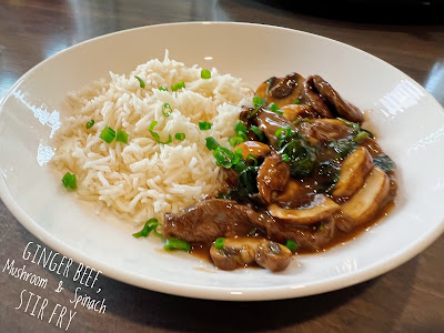 Tuesday: Ginger Beef, Mushroom & Spinach Stir Fry with Rice