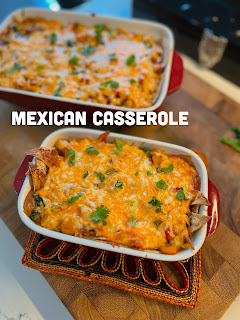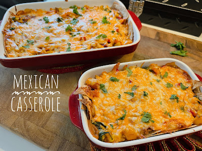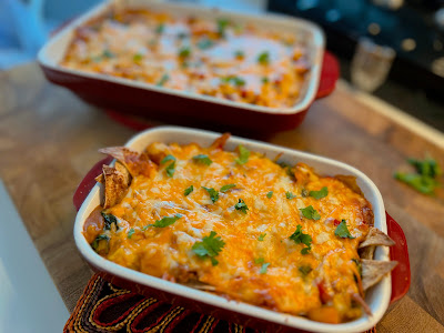 Cover loosely with foil and bake for 20-25 minutes, until the sauce is bubbling and the cheese is melted. Serve with cilantro and sour cream.