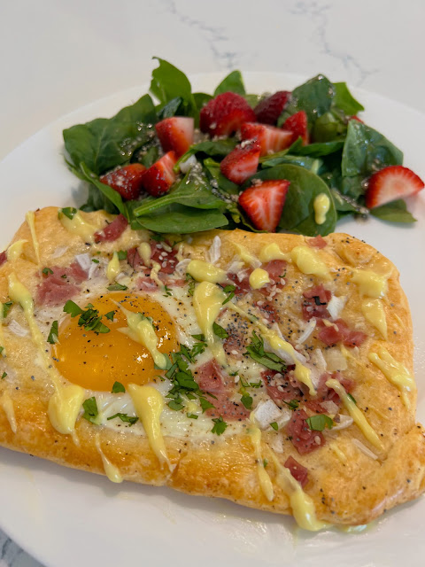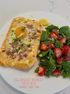 Thursday: Eggs Benedict Breakfast Pastry with Strawberry Spinach Salad