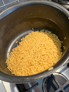 Place a large pot of water over high heat and add in a generous amount of salt. Once water boils, stir in the orzo and cook until al dente about 7-9 minutes. Once orzo is done cooking, drain pasta and set aside in the colander. Remember to reserve ½ cup of the pasta water.