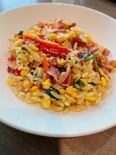 Monday: Spinach Garlic Parmesan Orzo with Crispy Bacon