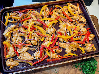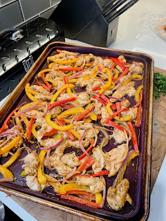 On Cinco de Mayo, we ate delicious chicken fajitas! This recipe is so freaking easy I almost feel guilty, sharing it with you! Mix everything together, put it on a sheet pan to bake, and then eat! Add salsa, sour cream, or make a batch of fresh pico and you have yourself an amazingly simple, but absolutely delicious Mexican dinner!