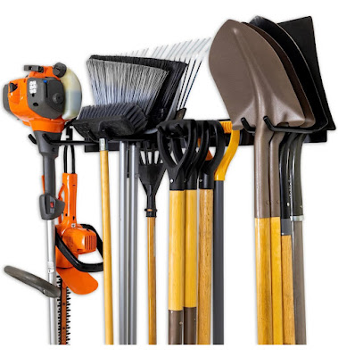 We bought this StoreYourBoard BLAT Tool Storage Rack for all our shovels and lawn care items. It is a heavy-duty, solid steel, wall mount organizer that can hold up to a max. of 200 lbs.