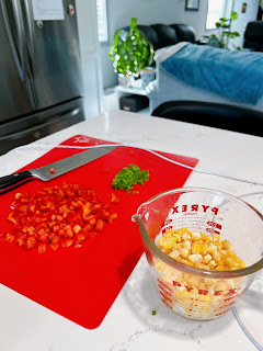 2 cobs corn, cooked and cut off cob