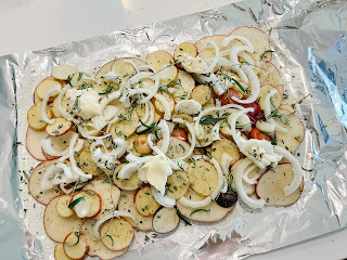 This is a Ninja’s favourite summer dinner by far! Steak, potatoes, a fresh salad, and zero dishes! This dinner is the ultimate, no prep, barbeque dinner! We make potato packets on the regular because they taste delicious and it’s zero mess and clean up! We can get by using 2 steaks, the Kids and I share a large steak and Ninja… eats the rest 😂. This salad was easy to throw together, tasted like summer, and was fresh and light! If you feel like it, toss some feta into the salad for a little something extra!
