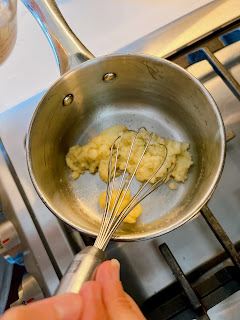 In a small saucepan or skillet, melt 4 tablespoons of butter over medium-low heat. Whisk in 4 tablespoons of flour and cook for a couple of minutes, stirring frequently. Whisk in the milk a little at a time to ensure you don’t have lumps. Once all of the milk is added, continue to cook and stir until the béchamel is thick enough to coat the back of a spoon. Remove from heat and stir in Dijon mustard. Season with salt and pepper.