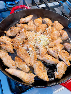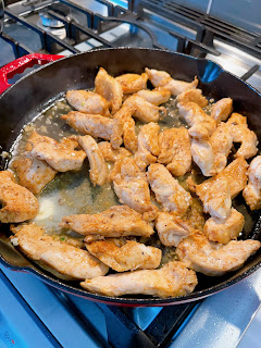 Flip the chicken strips over, add minced garlic, and cook for 2 more minutes. Lower the heat to low, add lime juice, and 2 tablespoons of butter. Cook for another 2 minutes or more, frequently stirring, until the chicken is cooked through but not overcooked and the garlic has softened.