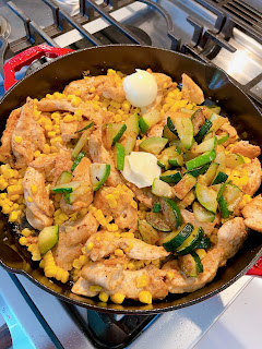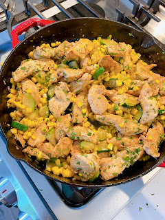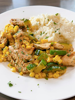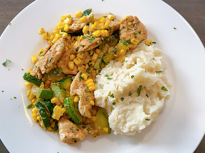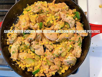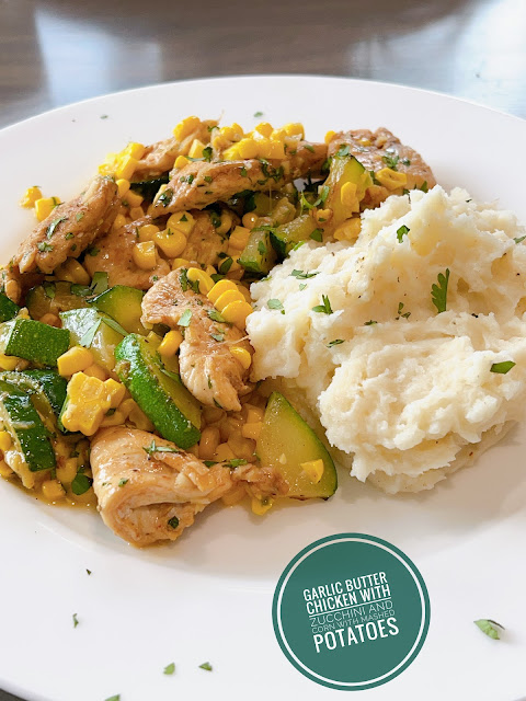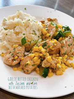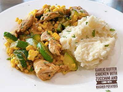 Friday: Garlic Butter Chicken with Zucchini and Corn with Mashed Potatoes