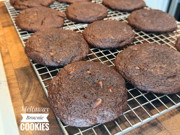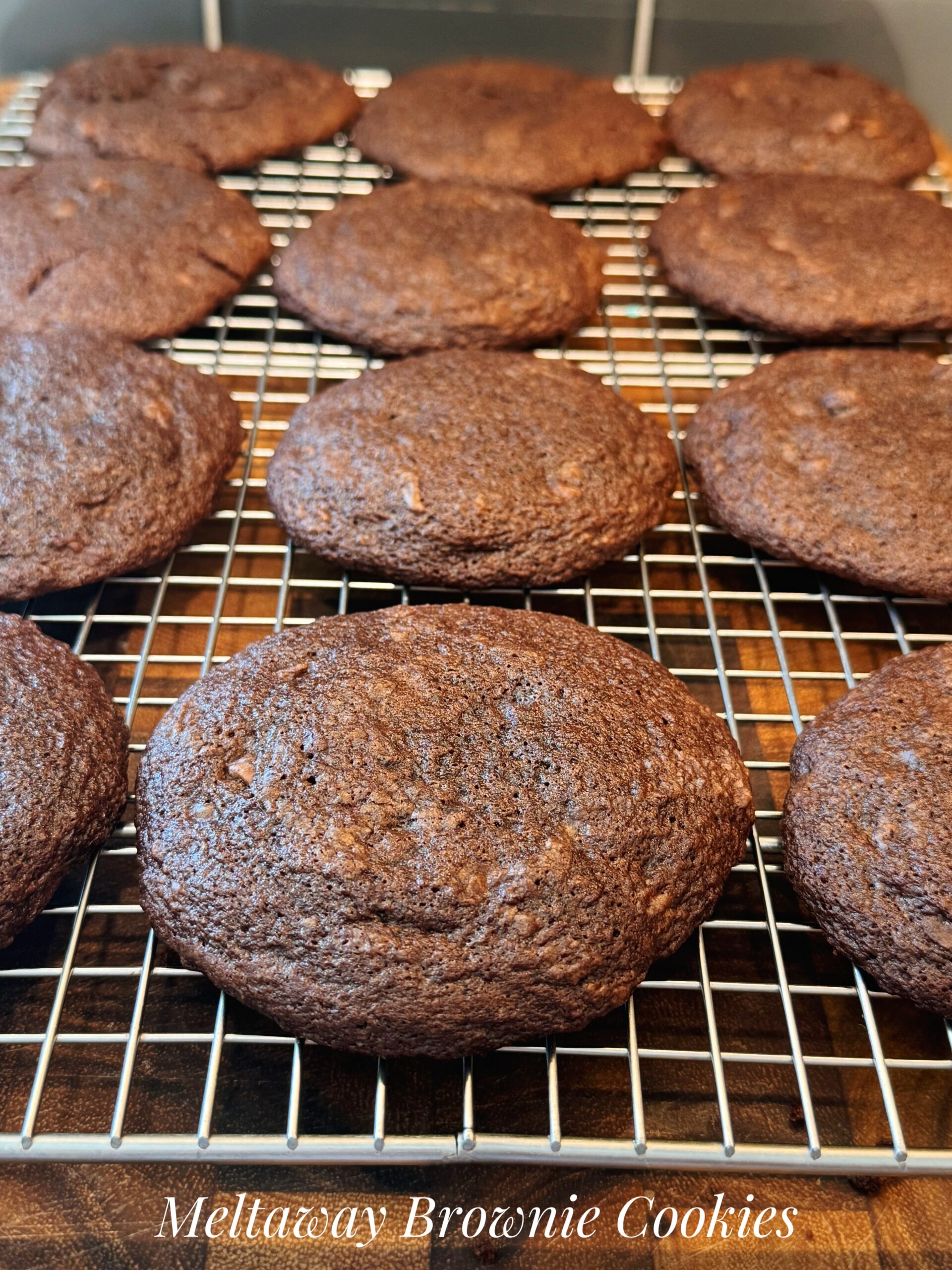 When I bake it is usually for lunches and for the Kids. But for as long as I can remember cookies have been a treat for the Dads. My Poppy ate 1 homemade giant chocolate chip cookie every night after dinner. We actually buried his ashes inside his cookie jar lol. My Dad loves a chocolate chip cookie after dinner with his coffee and Ninja likes cookies at anytime of the day! Lol these Meltaway Brownie Cookies were SO good! The perfect balance between a cookie and a brownie. These were fudgey and delicious!